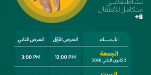 📅 الزمان:من يوم الجمعة ٢ كانون الثاني حتى الأحد ٤ كانون الثاني ٢٠٢٦⏰ مواعيد العروض اليومية:• العرض الأول: 12:00 ظهرًا• العرض الثاني: 3:00 عصرًا