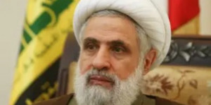 نائب الأمين العام لحزب الله سماحة الشيخ نعيم قاسم خلال حفل تأبين الشهداء على طريق القدس: حسن ترمس - حسين حاريصي - أحمد ترمس