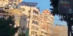 لحظة استهداف طيران العدو لاحد المباني على أوتوستراد السيد هادي نصرالله