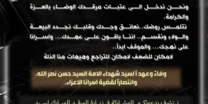 *بسم الله الرحمن الرحيم**وفاءً وعهدًا لسيد شهداء الأمة السيد حسن نصر الله.وانتصارًا لقضية أسرانا الأعزاء*.*نتشرف بدعوتكم للمشاركة في زيارة المرقد المب