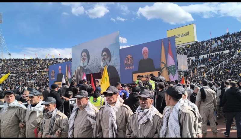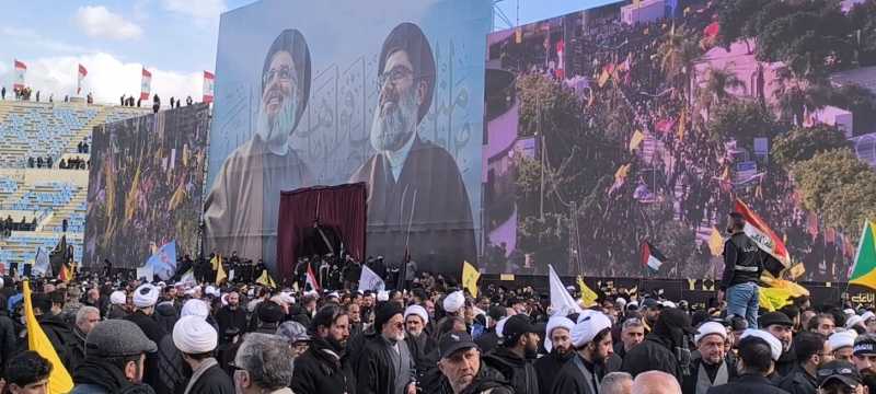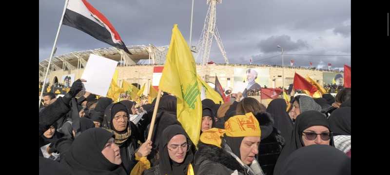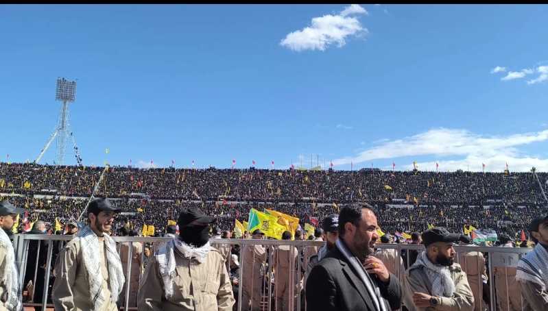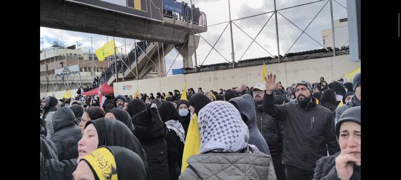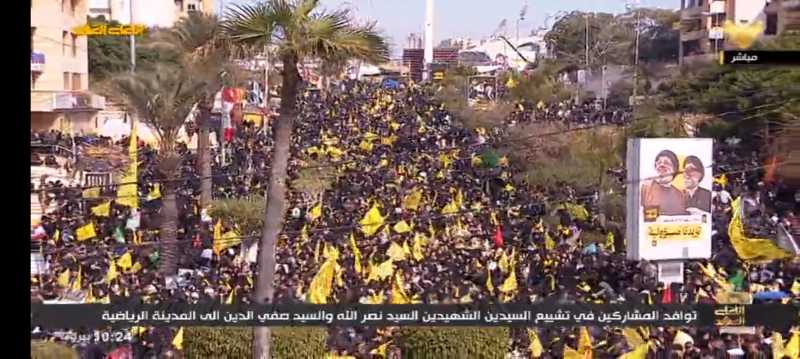 الضاحية الجنوبية ودعت اليوم سيد الشهداء في موكب جنائزي مهيب تشيع رسمي وشعبي وحضور وفود اكثر من 90 دولة وتامين التشيبع تحت حراسة امنية مشددة من حزب الله وسبعين مؤسسة اعلامية من مختلف دول العالم تشارك في تغطية التشييع الجنائزي المهيب
