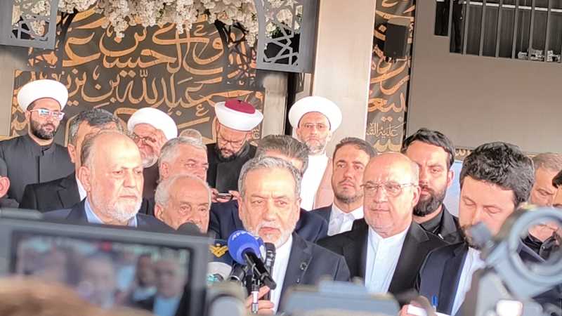 وقد كان للوزير عباس عراقتشي كلمة عند الضريح قال فيها: ان استشهاد السيد حسن نصر الله سيؤدي الى ازياد قوة المقاومة لان المقاومة حية وان الشهداء احياء وان دم الشهيد السيد حسن نصر الله هو حي وانني على ثقة تامة ان دماء الشهيد السيد حسن نصرالله ستكون اكثر تأثيرا، وان سماحة الامام الخميني مؤسس الجمهورية الاسلامية الايرانية قال في كلام منسوب ان الدم ينتصر على السيف وانني على ثقة تامة بأن النصر النهائي سيكون للشعب اللبناني وللمقاومة وان هزيمة الكيان الصهيوني هو امر قطعي وان دماء الشهيد السيد نصر الله سيكون ضامنا للانتصار وسنشهد الانتصار النهائي للشعب اللبناني وللمقاومة ضد الاحتلال الصهيوني من جانب الامام الخامنئي ومن جانب رئيس الجمهورية الاسلامية الايرانية السيد بزكشيان ومن جانب الحكومة الاسلامية الايرانية احييكم واتمنى لكم التوفيق والنجاح.