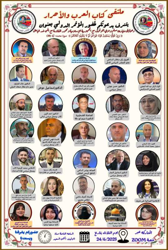 عقد ملتقى كتاب العرب والأحرار وبرعاية الحملة الدولية لكسر الحصار عن مطار صنعاء الدولي مؤتمرا دوليا عبر منصة زوم بالشراكة مع أصدقائه الاستراتيجين وهم: