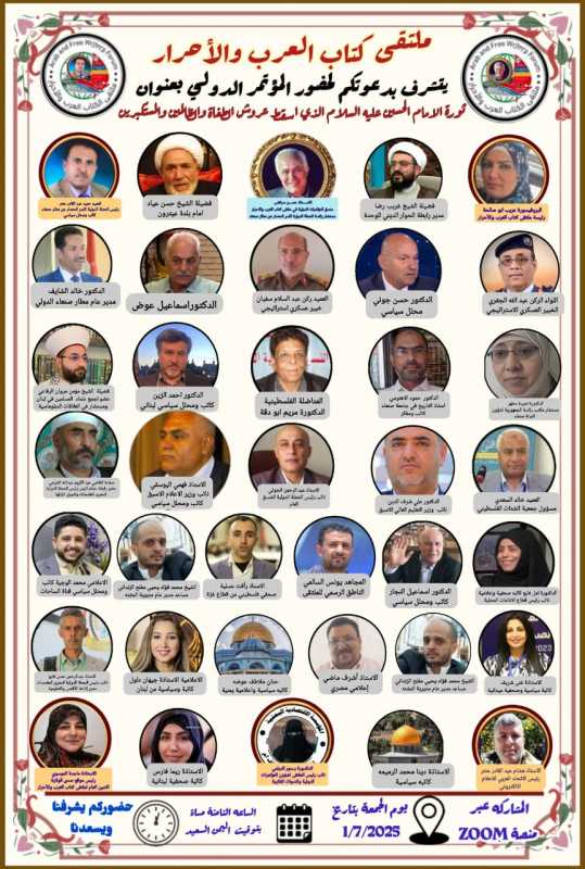 في ندوة دولية حاشدة مباركة في محضر حضور سيد شباب آهل الجنة الإمام الحسين عليه السلام، اجتمعت شخصيات سياسية وعسكرية وإعلامية وقيادادت سياسية إحياء ذكرى فاجعة الطف ومصاب ابى عبد الله الحسين واطفاله وأهل بيته وخيرة اصحابه عليهم السلام وربط الواقع الحاضر بالماضي أي مظلومية غزة وكل شعوب المحور بمظلومية كربلاء المقدسة ومواجهة طغاة الحاضر امريكا والصهاينة والمطبعين وذالك نقتدي على خط الإمام الحسين عليه السلام في مواجهة الطاغية يزيد وهذا الخط إلى يوم القيامة وقائد محور الخير هو الإمام الحسين عليه السلام وتضحيته في سبيل الدفاع عن الإسلام والمسلمين والمستضعفين والمظلومين بكل عصر وزمان ورحمة للعالمين على خط السير بسيرة جده وابيه صلواة الله عليهم والوقوف ضد محور الشر ابليس وحزبه وجنده وأعوانه.