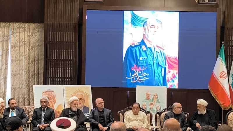 وفي ختام مراسم التعازي، ألقى سعادة السفير مجتبى أماني كلمة قال فيها: اليوم فتحنا دفتر العزاء بشهداء العدوان الإسرائيلي الخبيث على ايران، وقد حضرت في مراسمنا الكثير من الشخصيات والجماهير الشعبية القادمة من أقصى المدن اللبنانية، وقد رأينا في وجوههم الحزن لفقدان الشهداء العلماء والمدنيين الإيرانيين من نساء وأطفال وجميع الشهداء الذين ارتقوا جراء العدوان، وفي نفس الوقت كانت وجوههم مستبشرة بالإنتصار في حرب الإثني عشر يوماً التي سجّلت في التاريخ صمود الشعب الإيراني بأكمله أمام هذا الهجوم الغاشم، وانشاءالله سنكمل في طريق الإنتصارات في المستقبل، والجمهورية الإسلامية الإيرانية ستبقى مستعدة للرد على أي عدوان آخر بأقوى مما يتصور هؤلاء في الكيان الصهيوني الذين يعيشون أوهام الإنتصار بينما هم في الحقيقة فاشلين في عملياتهم الهجومية ضد ايران. نحن فقدنا هؤلاء الشهداء وانشاءالله ربنا يعوضنا بأحسن منهم، وتاريخ الجمهورية الإسلامية الإيرانية يثبت ذلك.