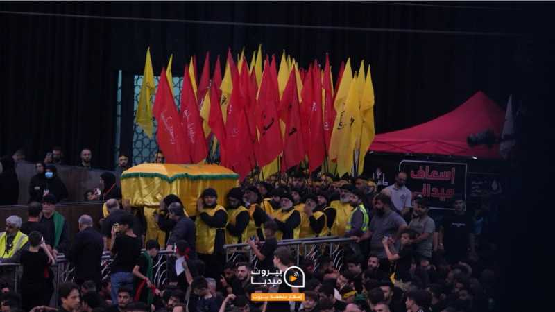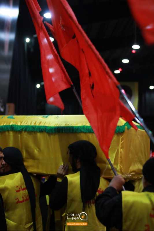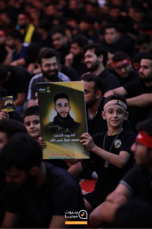بعد ذلك، تلا فضيلة الشيخ علي سليم السيرة الحسينية العطرة، وفي ختام المجلس، دخل ثلة من المجاهدين يحملون نعشاً لُف بعلم حزب الله، يتقدمه صورة الشهيد الأسمى والأقدس السيد حسن نصر الله (رض)، وخلفه حملة الرايات التي تحمل الشعارات الحسينية والكربلائية، وبعد أن جابوا أرجاء المجمع، بدأت اللطمية الحسينية التي لطم المشاركون صدورهم على وقع كلماتها، مرددين الشعارات الحسينية والكربلائية.