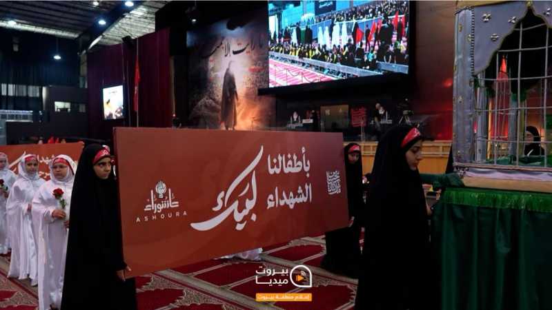 بداية المراسم كانت مع تلاوة لآيات بينات من القرآن الكريم للقارئ حسن حسين حمود نجل الشهيد حسين حمود، ثم دخلت مجموعة من الفتيات اللواتي حملن على أكتافهن مهد الطفل الرضيع كتعبير عن خلو المهد من رضيعه، وجلن فيه داخل المجمع على وقع موسيقى عاشورائية، بعدها، دخلت مجموعة من الفتيات باللباس الأبيض كتعبير عن ملائكة السماء، في مشهدية تجسد أطفال الشهداء تحت عنوان "بأطفالنا الشهداء لبيك"، ثم دخل مجموعة من الفتية أبناء الجرحى يحملون رايات كتب عليها "لبيك"، تبعهم مجموعة من الفتيات بنات الشهداء اللواتي رفعن صور آبائهم الذين استشهدوا دفاعاً عن الأرض والوطن لنحيا بعزة وكرامة، لتختتم المراسم بدخول مجموعة من الفتيات اللواتي يحملن صورة الشهيد الأسمى والأقدس السيد حسن نصر الله (رض) وكتب عليها "بشهيدنا الأقدس لبيك".