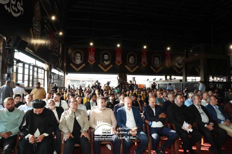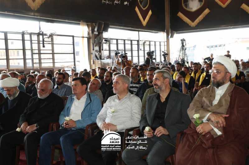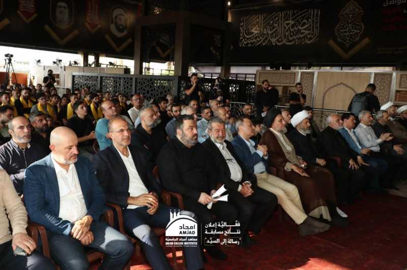 نظمت معاهد أمجاد الجامعية بالتعاون مع جمعية إبداع في لبنان حفل إعلان نتائج مسابقة "رسالة إلى السيد" وتكريم الفائزين والمشاركين فيها، في رحاب مرقد سماحة سيد شهداء الأمة السيد حسن نصرالله(طاب ثراه)، بحضور ومشاركة عائلة سماحة الشهيد الأسمى وجمع كبير من الشخصيات والفعاليات الدينية والسياسية والحزبية والتربوية والاجتماعية والثقافية والدبلوماسية، وعدد من عوائل الشهداء والجرحى.
