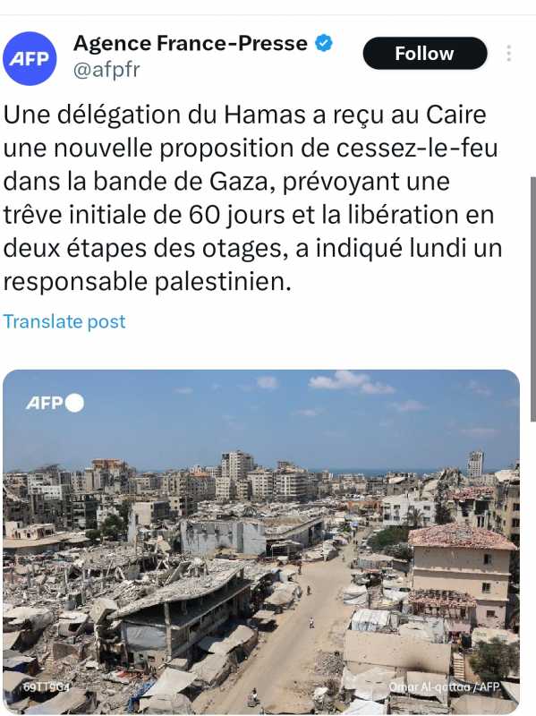 وكان مصدر مطلع في الحركة أفاد، في وقت سابق، وكالة «فرانس برس»، بأنّ الحركة سلمت، اليوم، «ردها للوسطاء بموافقتها والفصائل الفلسطينية على المقترح الجديد بشأن وقف إطلاق النار وبدون طلب أي تعديلات».