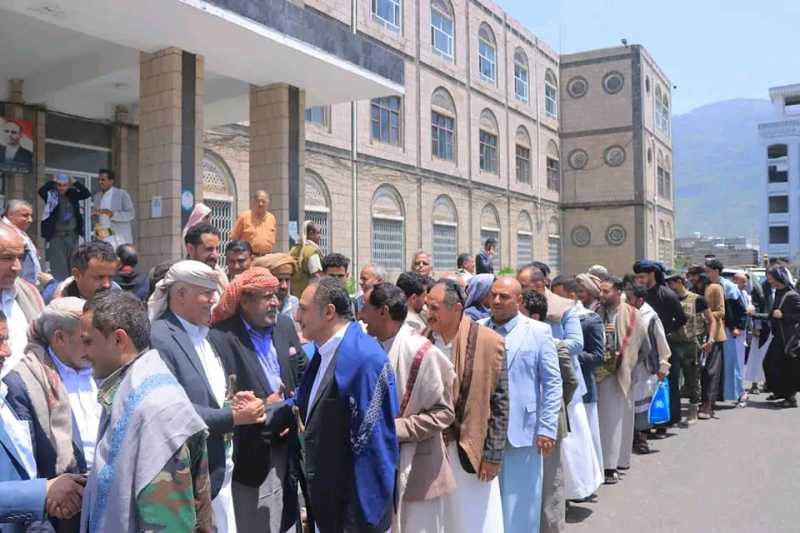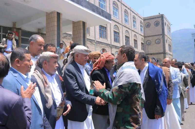 وخلال الاستقبال أكد المحافظ صلاح اهتمام المجلس السياسي الأعلى، والسلطة المحلية بالإفراج عن كافة الأسرى ومتابعة المفقودين ورعاية الجرحى وأسر الشهداء .. معتبرا استقبال وتكريم الأسرى والاحتفاء بتحريرهم أقل ما يمكن تقديمه نظير تضحياتهم في سبيل الوطن .