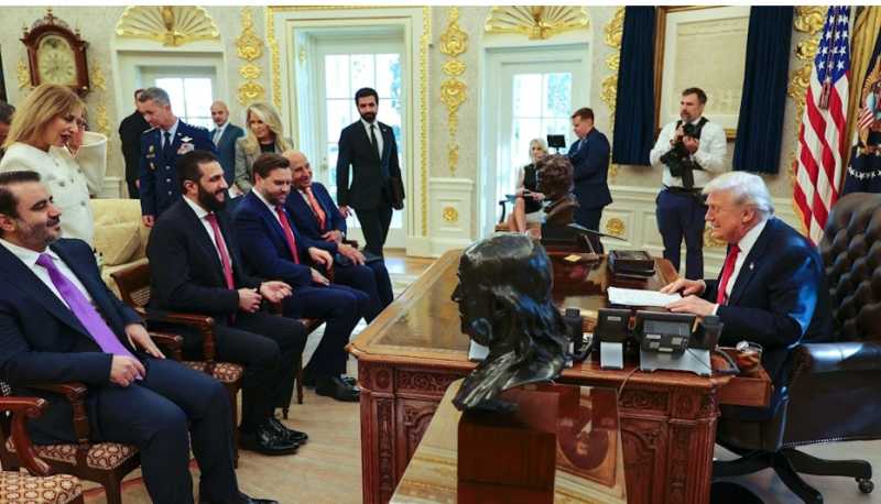وكان الشرع قد استهلّ زيارته بلقاءات مع الجالية السورية وعدد من الباحثين والصحافيين، قبل أن يدخل، برفقة الشيباني، البيت الأبيض مساء أمس، ويعقد اللقاء المُغلق مع ترامب وروبيو. ويُعدّ هذا اللقاء الذي وُصف بالتاريخي، تبعاً لمكان انعقاده ولشخصية الشرع الذي كان قبل عام فقط مطلوباً ومُدرجاً على لوائح الإرهاب، الثالث بين الشرع وترامب، بعد لقاءين مقتضبيْن في الرياض (بوساطة سعودية)، وفي نيويورك على هامش اجتماعات الجمعية العامة للأمم المتحدة، ما يجعل اجتماع الأمس الأول المباشر بينهما. ومع ذلك، لم يستغرق الاجتماع وقتاً طويلاً، ولم يتبعه أي مؤتمر صحافي أو بيان توضيحي.