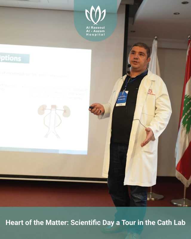 نظّم مستشفى الرسول الأعظم (ص) يومًا علميًا متخصّصًا تناول أحدث التطورات في الأعمال العلاجية التداخلية المتقدمة لأمراض القلب و الشرايين والأوعية الدموية، بمشاركة أطباء وممرضين وفنيين من مختلف المؤسسات الصحية.