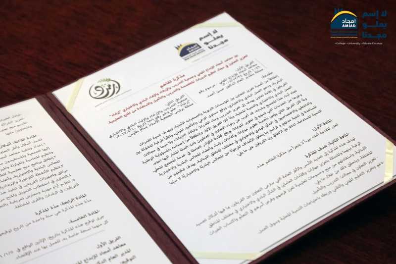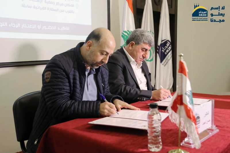 إنطلاقاً من أهمية تعزيز التعاون بين المؤسسات التربوية والجمعيات الأهلية، وقّعت معاهد أمجاد الجامعية مذكّرة تفاهم مع جمعية التدريب والإرشاد والإنماء البلدي والاختياري "إرشاد".