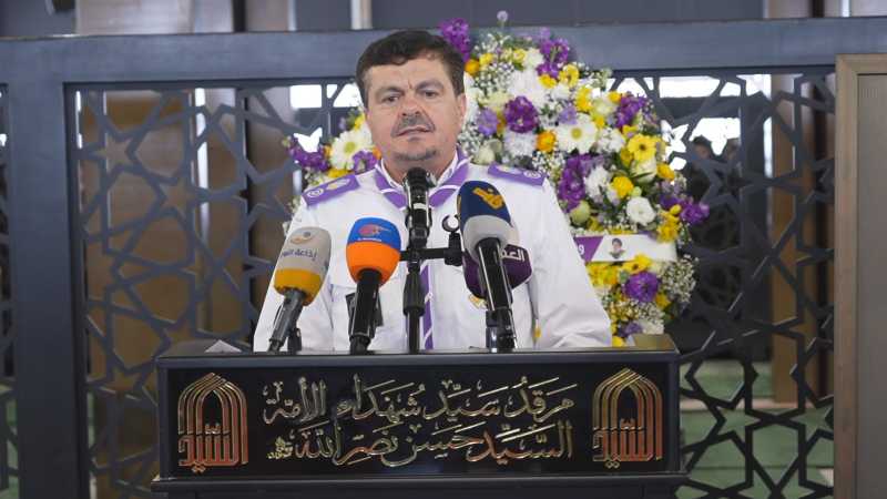 وأشار إلى أن مسيرته كانت زاخرة بالعطاء والعلم والجهاد، وأن شهادته لم تُنهِ حضوره، بل جعلت منه نموذجًا حيًّا متجددًا في وجدان محبيه وتلامذته. وخاطبه باسم الكشفيين الذين نشأوا على قيمه، مستذكرًا دوره في تثبيت نهج الولاية والشهادة، ومؤكدًا أن ما زرعه في نفوس الأجيال سيبقى حيًّا في مسيرتهم والتزامهم.