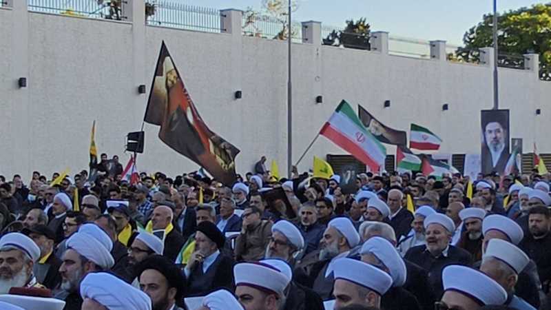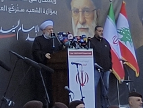 كلمة حزب الله القاها النائب علي فياض اذ اكد التمسك بالعيش المشترك والعمل من أجل أمن واستقرار لبنان. ودعا السلطة اللبنانية إلى عدم القلق من الدور الإيراني، مشددًا على أن إيران تسعى للدفاع عن الشعب اللبناني.
