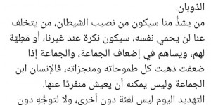 أنا وأنت، وهو نحن جميعًا، علينا أن نكون اليوم روحًا واحدة في جسوم متفرقة، ففي الأزمات والمنعطفات الكبرى يجب أن تنحسر الأنا، وتذوب الذات، ليعمل الكل بر