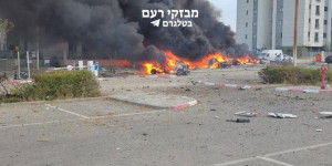 *جنوب فلسطين المحتلة*، *المبنى المدمر الذي يظهر في الصورة هو مبنى (Gav-Yam 4)، وهو جزء من منطقة CyberSpark – حديقة التكنولوجيا المتقدمة في بئر السبع