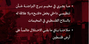 نفت الفصائل الفلسطينية في لبنان، اليوم، وجود نوايا لتسليم السلاح داخل المخيمات الفلسطينية، وخاصةً في مخيم برج البراجنة.وأوضحت الفصائل، في بيانٍ اليوم،